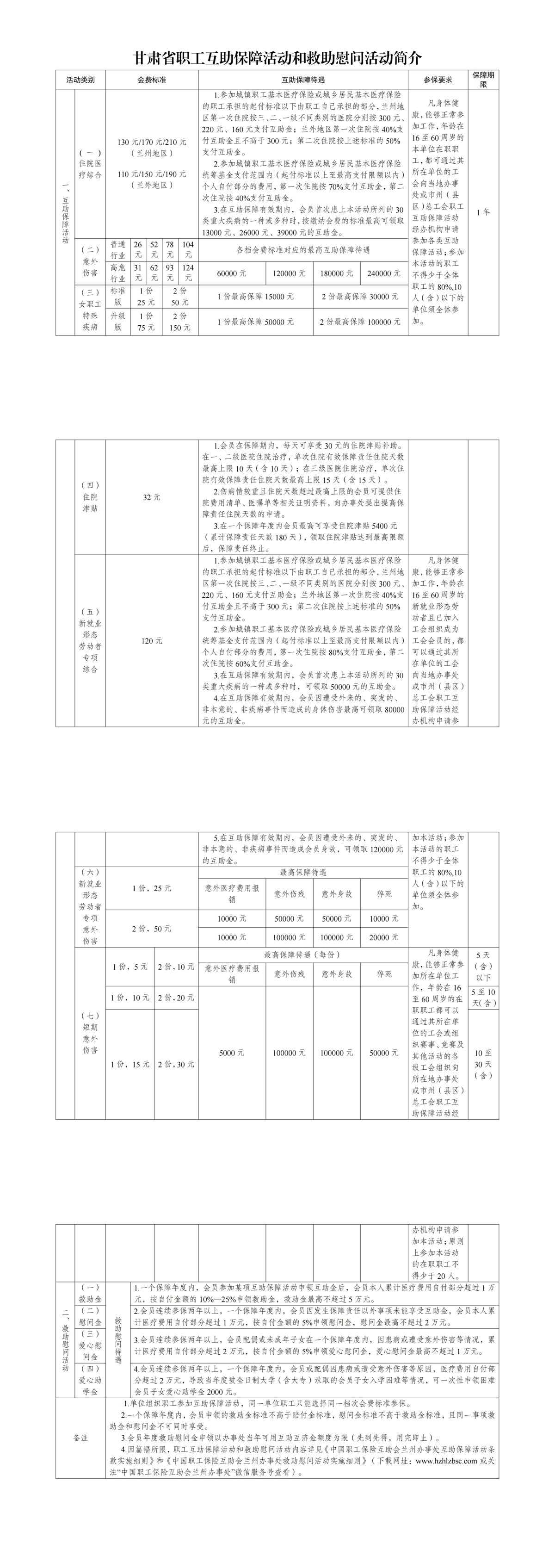 甘肃省职工互助保障活动和救助慰问活动一览表(2025年版)